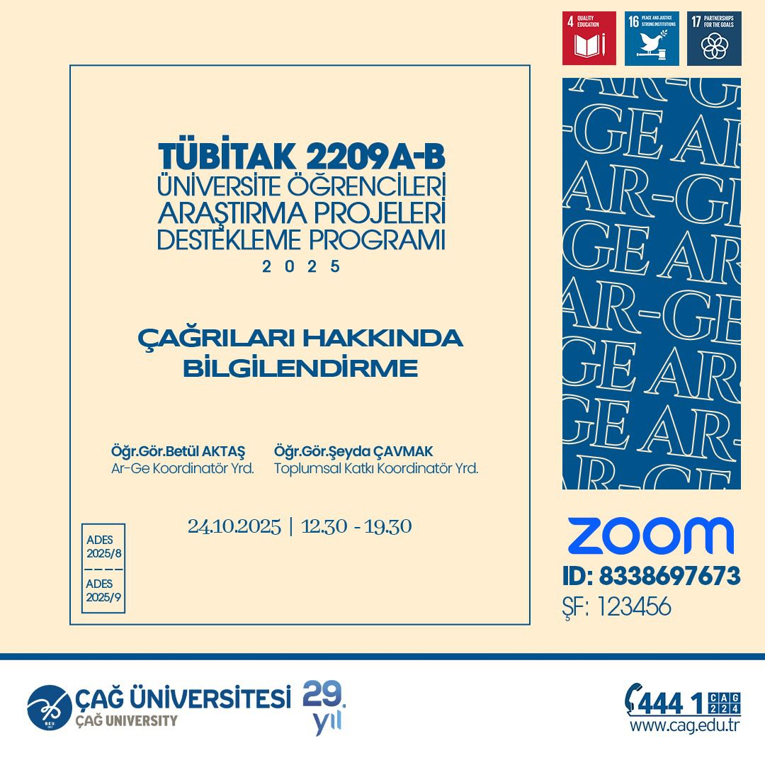 “TÜBİTAK 2209 A-B – University Students Research Projects Support Program (Student Information Training) – 24.10.2025”