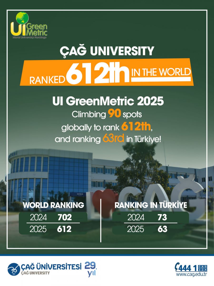 The 2025 results of the UI GreenMetric Green Campus University Rankings, announced in their 15th year, cover 1,745 universities from 105 countries worldwide. As a global ranking dedicated to evaluating the sustainability performance of universities, the GreenMetric results mark a significant achievement for Çağ University this year.