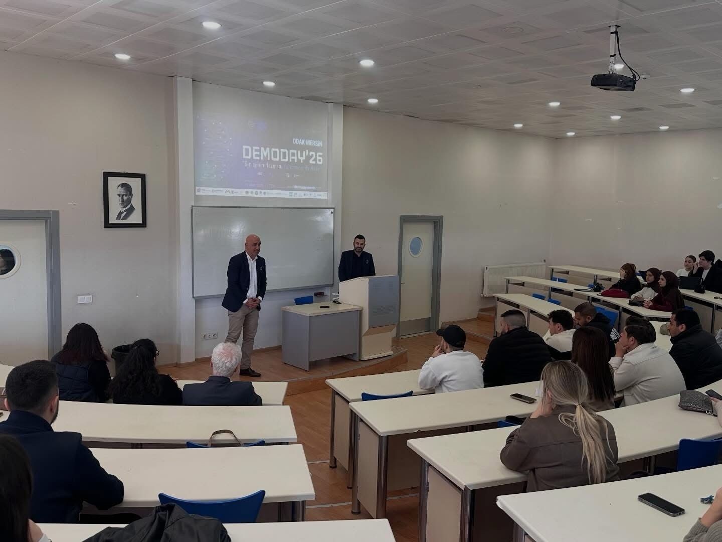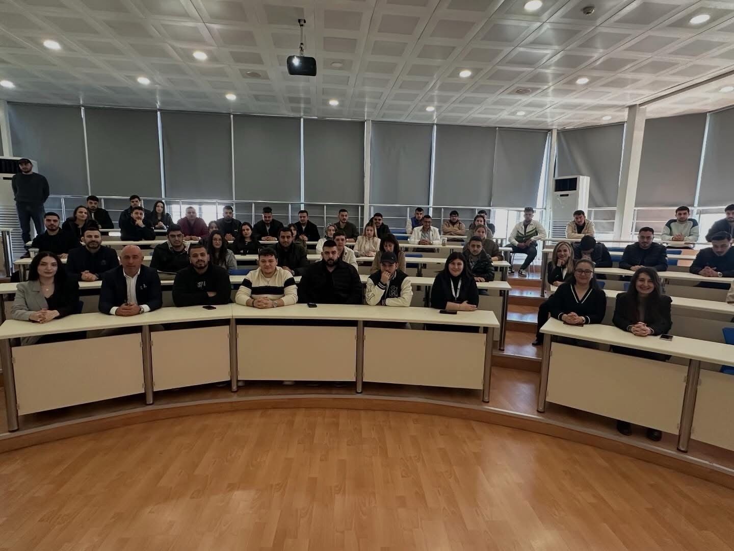 Bilgi paylaşımı için Mersin Ticaret ve Sanayi Odasını temsilen Dr. Osman Kiper ve Ahmet Oktay Çağ Üniversitesi öğrencileriyle bir araya gelerek program hakkında bilgi aktardılar.
