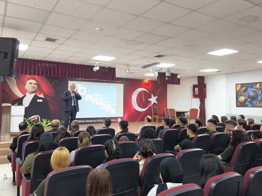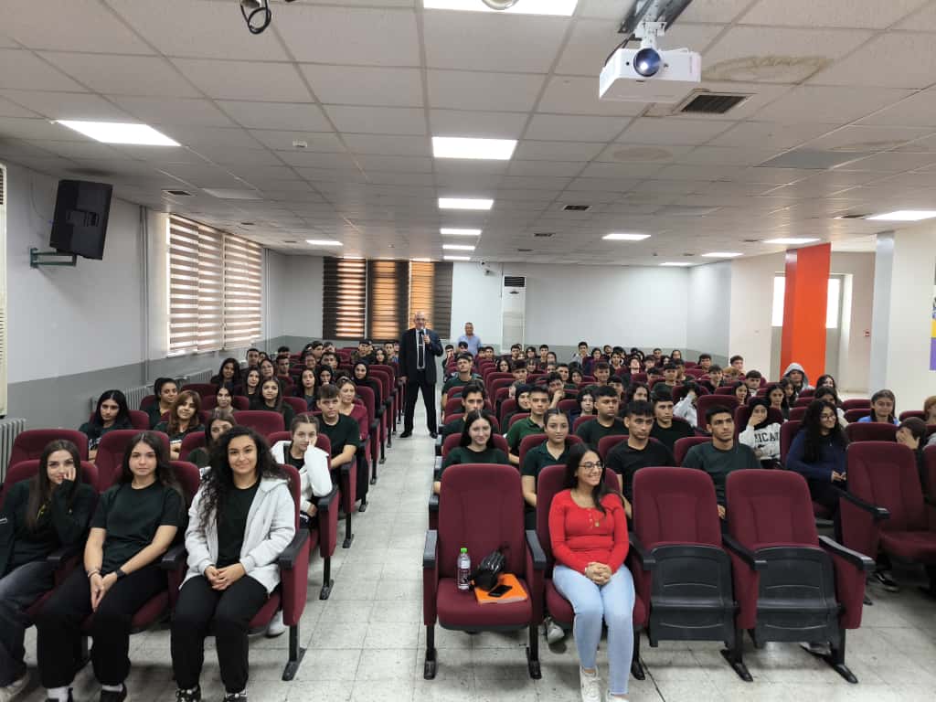 Tarsus Kaymakamlığı koordinesinde yürütülen Büyük İlçeler Güven Dönüşüm Projesi Okul Aile El Ele Etkinliği kapsamında Çağ Üniversitesi Rektörü Prof. Dr. Murat Koç, Şehit Cengiz Topel Anadolu Lisesi öğrencilerine akademik başarı ve kariyer basamakları konulu sunum yaparak, söyleşide bulundu.