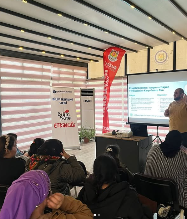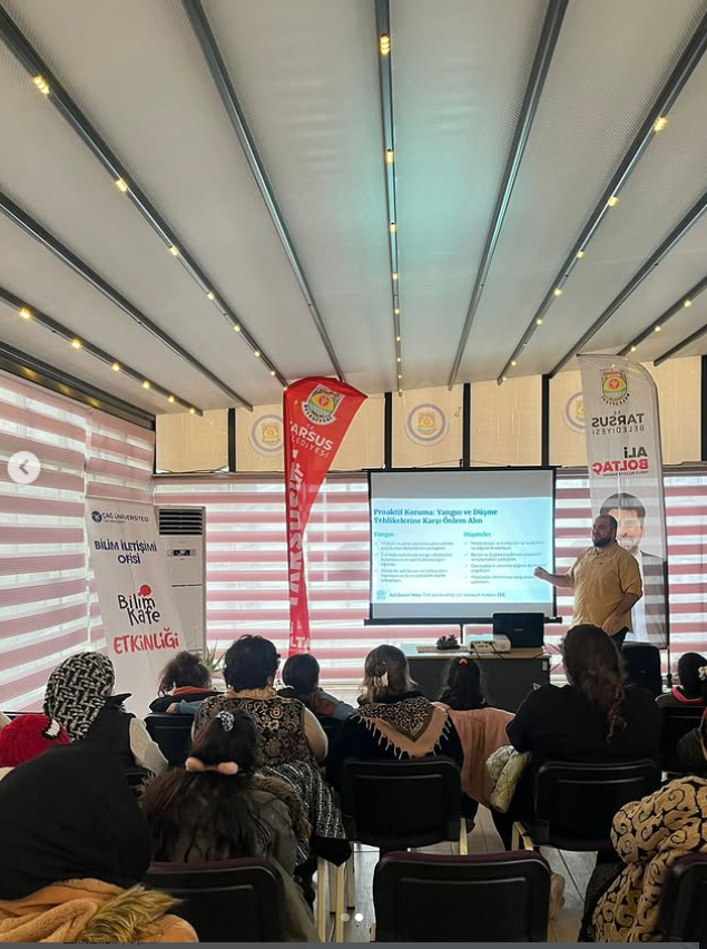 "Çağ Üniversitesi Meslek Yüksekokulu Sosyal Sorumluluk Projeleri kapsamında, Tarsus Belediyesi Kadın Yaşam Destek ve Dayanışma Merkezi çatısı altında "Evde Güvendeyim: Kadınlar İçin Sağlık ve Güvenlik Eğitimi" Öğr. Gör. Adem BİLGİN tarafından gerçekleştirilmiştir. Tarsus’ta yaşayan kadınların ev kazalarına karşı bilinçlendirilmesini hedefleyen eğitimde; yanıklar, kesikler, düşmeler ve zehirlenmeler gibi evde sıkça karşılaşılan risklere yönelik doğru ilk yardım müdahaleleri uygulamalı olarak aktarılmıştır.