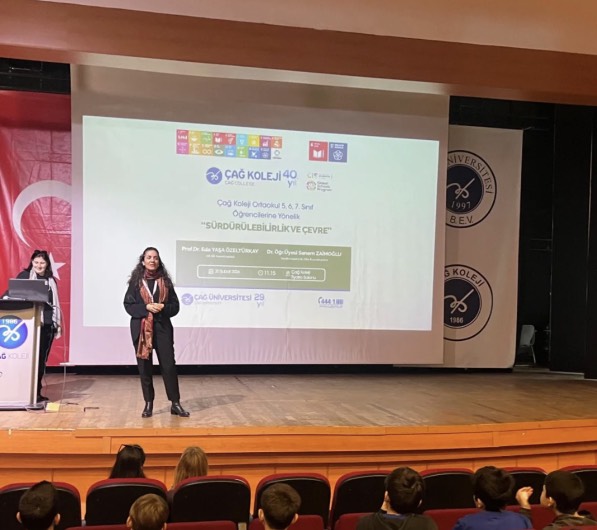Çağ Koleji Ortaokul öğrencileri, “Sürdürülebilirlik ve Çevre” temalı ilham verici bir seminerde bir araya geldi. Gerçekleştirilen etkinlikte öğrenciler, sürdürülebilir yaşam anlayışı ve çevresel sorumluluk bilinci üzerine kapsamlı bilgiler edindi. Seminer, AR-GE Koordinatörü Prof. Dr. Eda Yaşa Özeltürkay ile Sürdürülebilirlik Ofisi Koordinatörü Dr. Öğr. Üyesi Senem Zaimoğlu’nun katkılarıyla gerçekleştirildi. Program kapsamında sürdürülebilir yaşamın önemi, doğal kaynakların bilinçli kullanımı ve Küresel Amaçlar doğrultusunda bireylerin üstlenebileceği sorumluluklar ele alındı. Etkinlikte öğrenciler, çevreye duyarlı birey olmanın gerekliliklerini keşfederken; günlük yaşam alışkanlıklarının doğa üzerindeki etkileri hakkında farkındalık kazandı. İnteraktif şekilde ilerleyen seminer, gençlerin konuya olan ilgisi ve aktif katılımıyla dikkat çekti. Program sonunda, daha yaşanabilir bir dünya için bireysel sorumluluğun bugünden başladığı mesajı vurgulandı. Eğitim yoluyla çevresel farkındalığın artırılmasının, sürdürülebilir bir gelecek inşa etmedeki kritik rolüne dikkat çekildi.