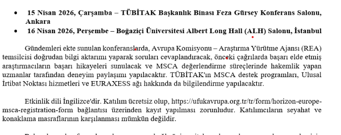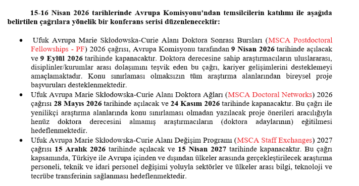 15 ve 16 Nisan 2026 Tarihlerinde, Ankara ve İstanbul'da Gerçekleşecek Ufuk Avrupa Marie Skłodowska Curie Uluslararası Burs ve Araştırma Destekleri 30. Yıl Etkinliklerine katılım duyurusu hakk