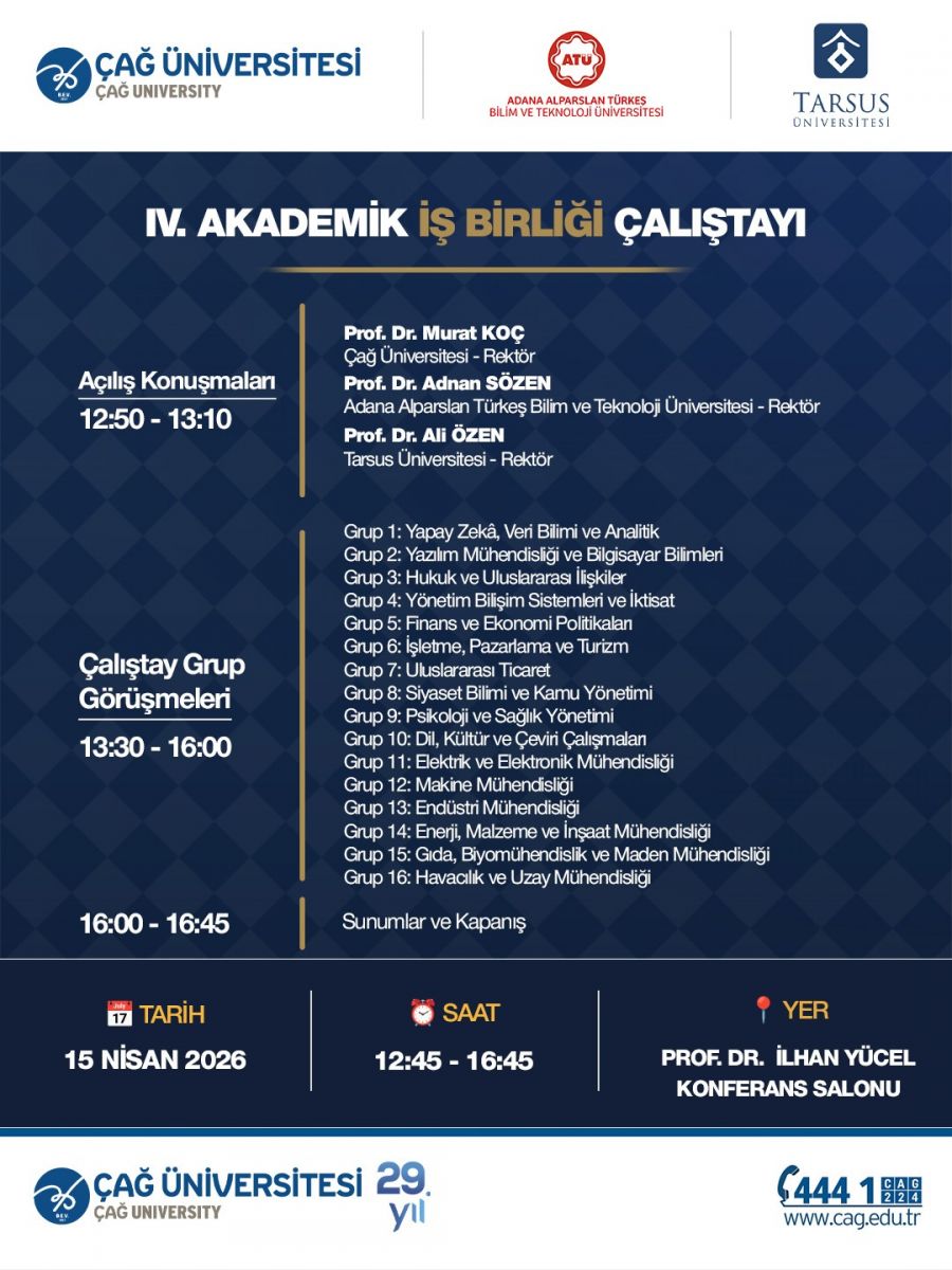 IV. Akademik İşbirliği Çalıştayı Çağ Üniversitesi ev sahipliğinde 15 Nisan 2026