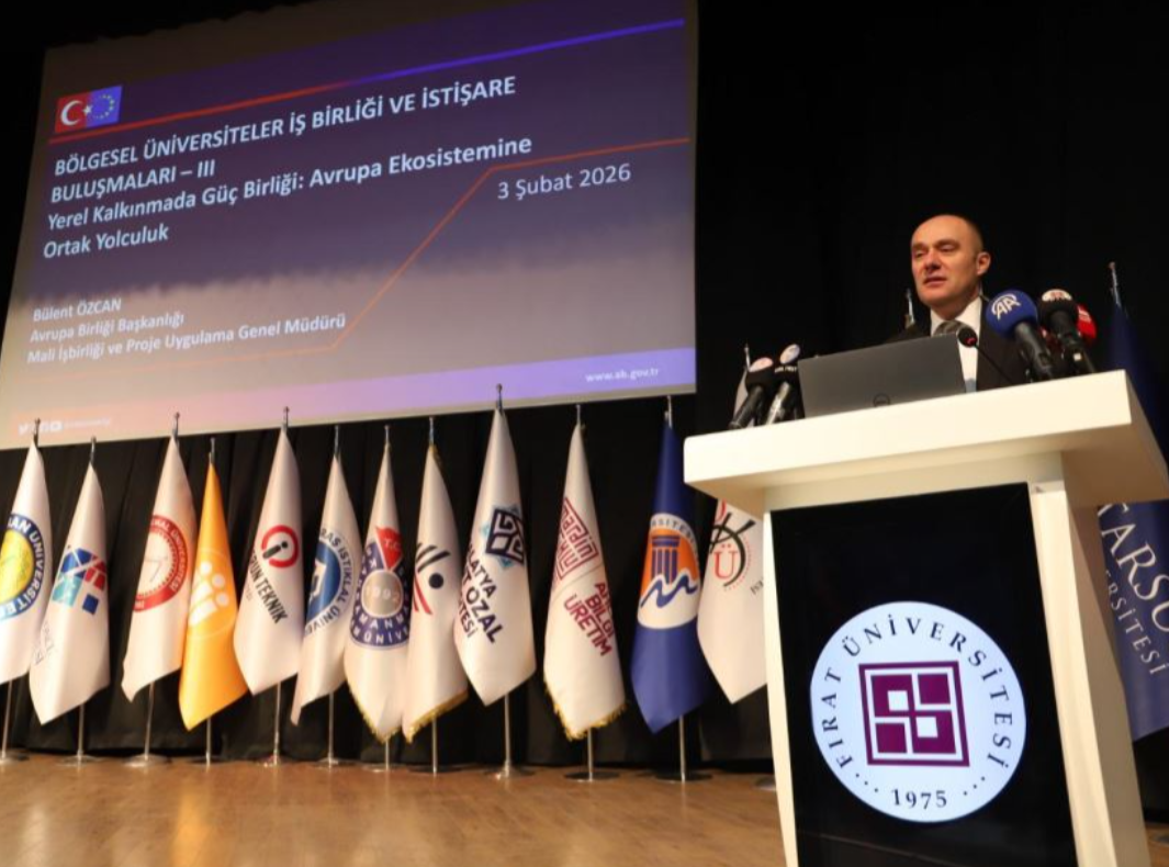3 şubat 2026 tarihinde 3. Bölgesel Üniversiteler İş Birliği ve İstişare Buluşmalarına Çağ üniversitemizi temsilen Bilişim Teknolojileri Direktörü Dr. Öğr.Üyesi Taylan TUTKUNCA katılım göstermiştir. Çağ Üniversitesi olarak Fırat Üniversitesi ev sahipliğinde 3 Şubat Salı günü düzenlenen “3. Bölgesel Üniversiteler İş Birliği ve İstişare Buluşmaları” toplantısına katılım gösterdik. Atatürk Kültür Merkezi'nde gerçekleştirilen toplantı, “Yerel Kalkınmada Güç Birliği, Avrupa Ekosistemine Ortak Yolculuk” temasıyla düzenlendi.