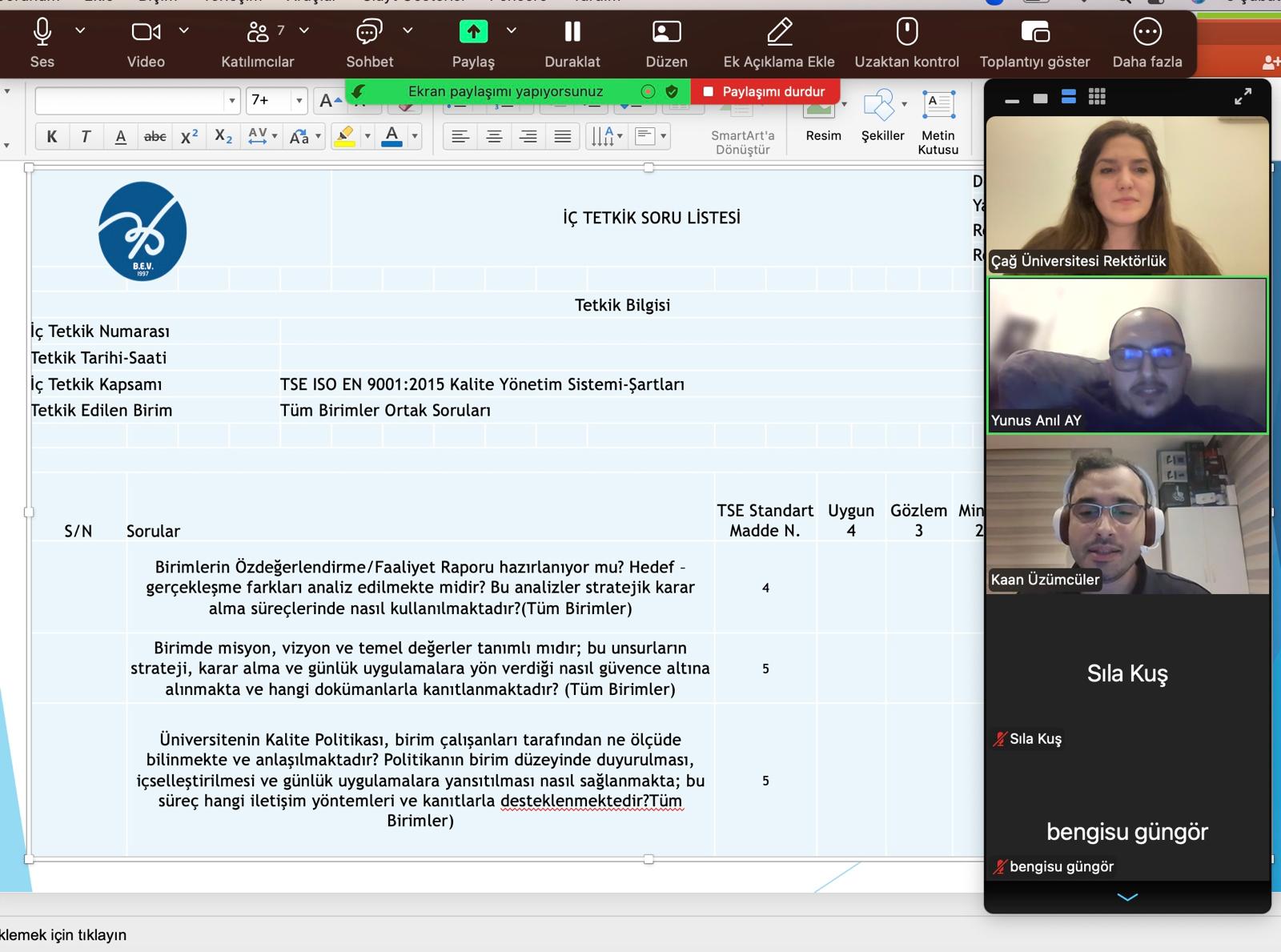 Eğitim kapsamında öğrencilere; iç tetkik sürecinin amacı, kapsamı ve uygulama esasları hakkında bilgilendirme yapılmış, tetkik sürecinde değerlendiricilerin rol ve sorumlulukları detaylı olarak ele alınmıştır. Ayrıca, kalite güvencesi yaklaşımı çerçevesinde gözlem, değerlendirme ve raporlama süreçlerine ilişkin temel ilkeler paylaşılmıştır.