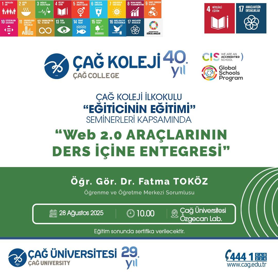 Yüksekokulumuz Öğr. Gör. Dr. Fatma Toköz, 28.08.2025 tarihinde Çağ Üniversitesi Özgecan LAB’da Çağ Koleji İlkokul öğretmenleri ile bir araya gelerek “Yapay Zeka ve Web 2.0 Araçları ile Dersleri Dönüştürmek: Uygulamalı Atölye” başlıklı etkinliği gerçekleştirmiştir. Etkinlik, SDK Politikaları SK4 (Nitelikli Eğitim) ve SK17 (Amaçlar için Ortaklıklar) çerçevesinde, sınıf ortamında teknolojik entegrasyon stratejilerinin uygulanması ve öğretmenlerle deneyim paylaşımının sağlanması amacıyla düzenlenmiştir.